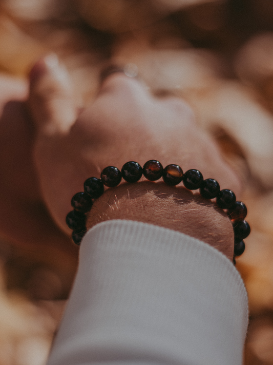 Bracelets like "Tiger Eye & Obsidian" and "Pietersite & Obsidian" ignite bravery, self-trust, and decisive action by activating empowering chakras.