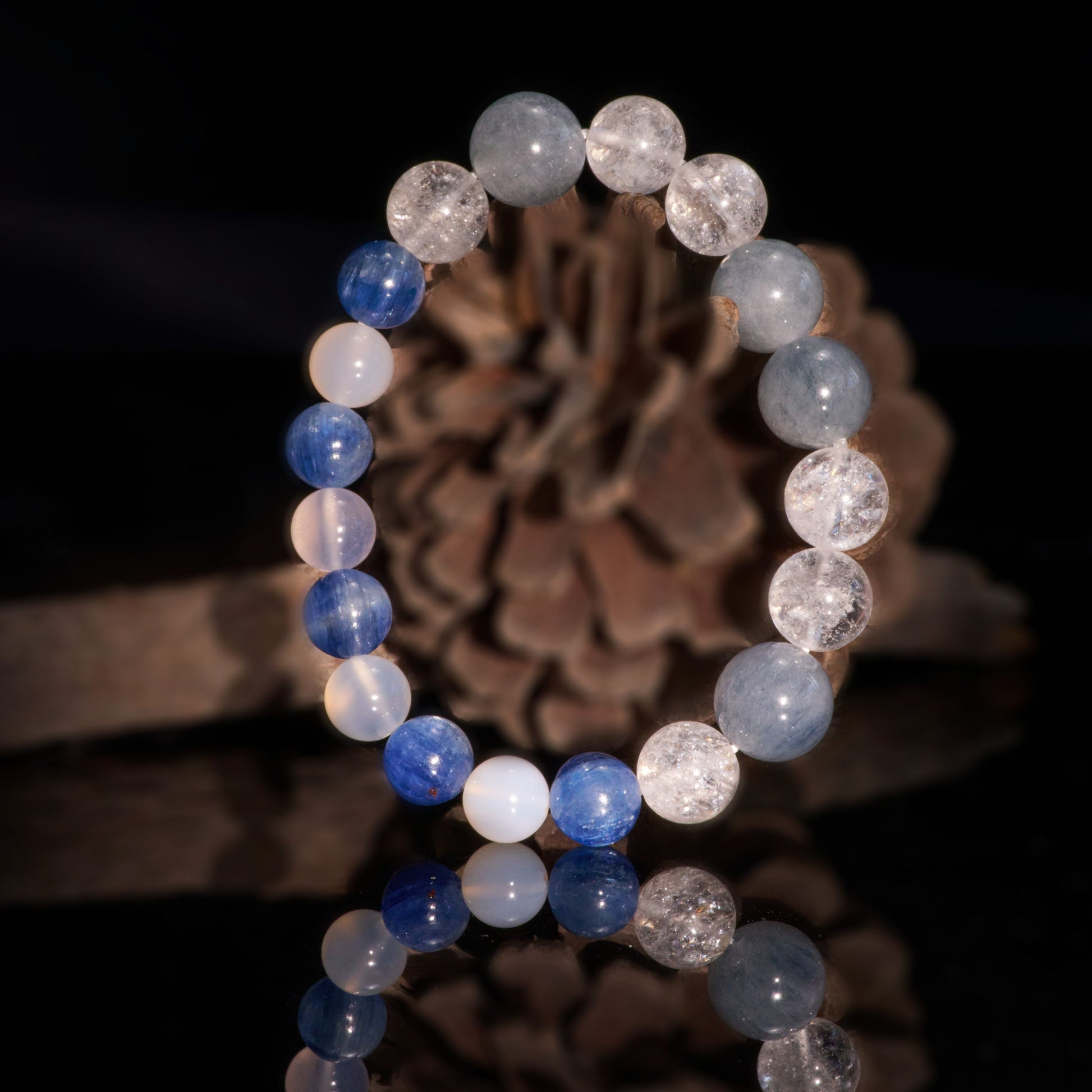 - Materials: Azeztulite, White Agate, Blue Rutilated Quartz, Blue Kyanite