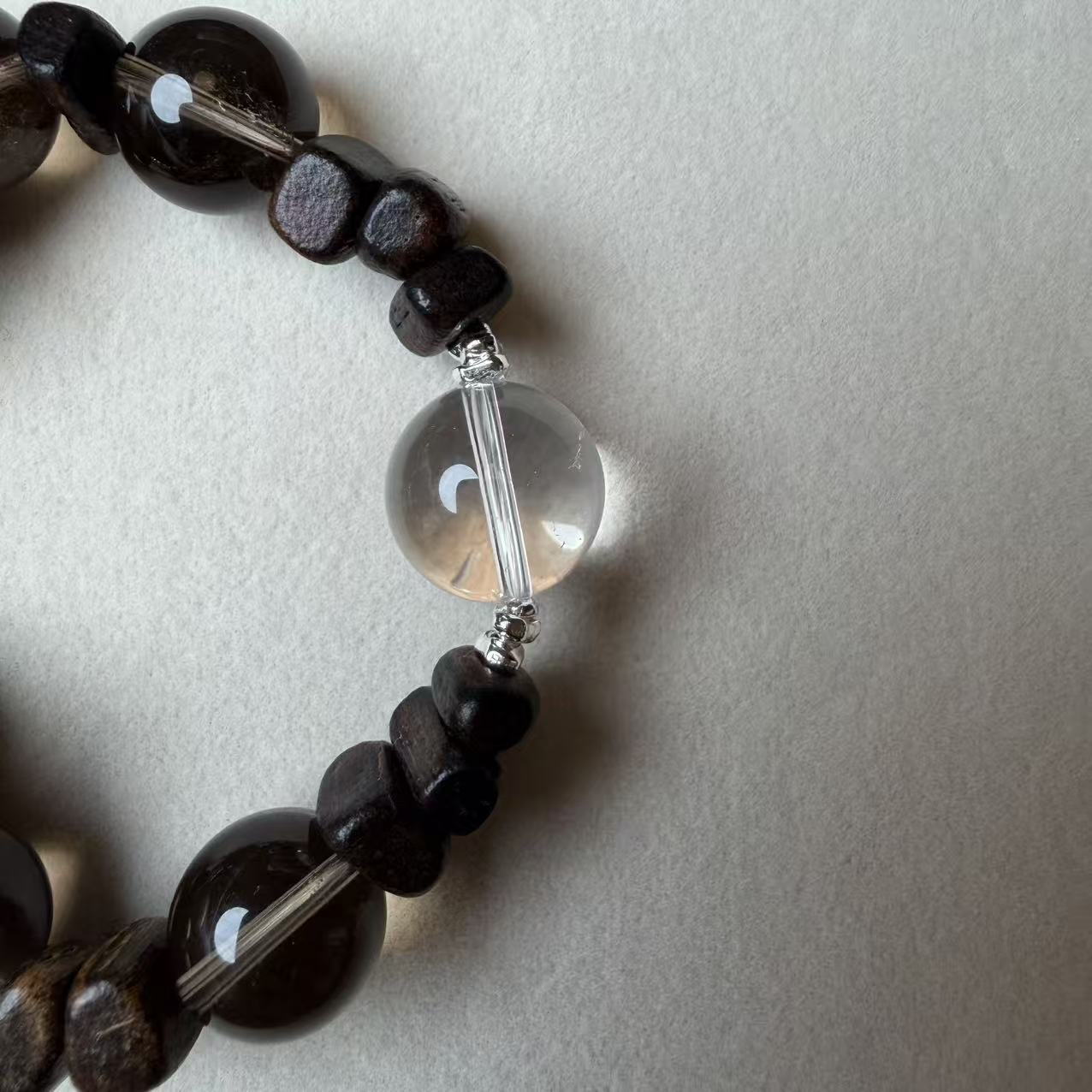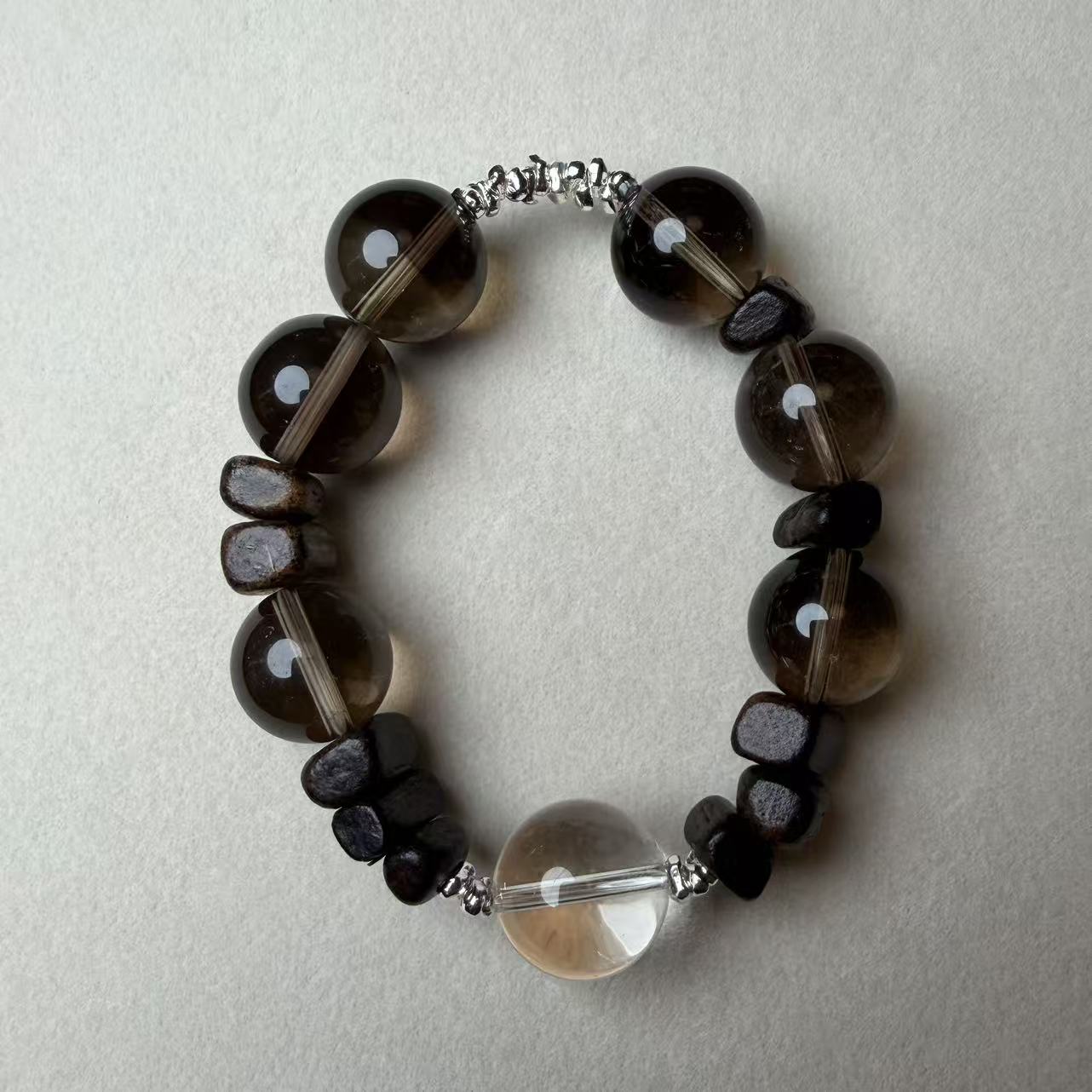 This bracelet is made with Smoky Quartz, Clear Quartz, and natural wood, complemented by subtle silver-tone details. It helps ground the spirit, clear negative energy, stabilize emotions, and bring a peaceful, earthy balance to daily life.