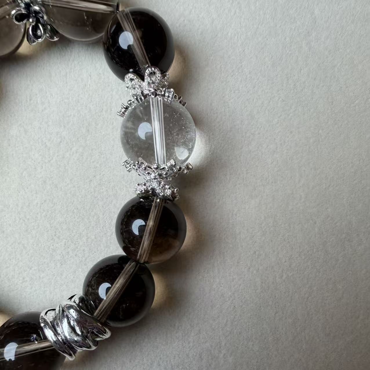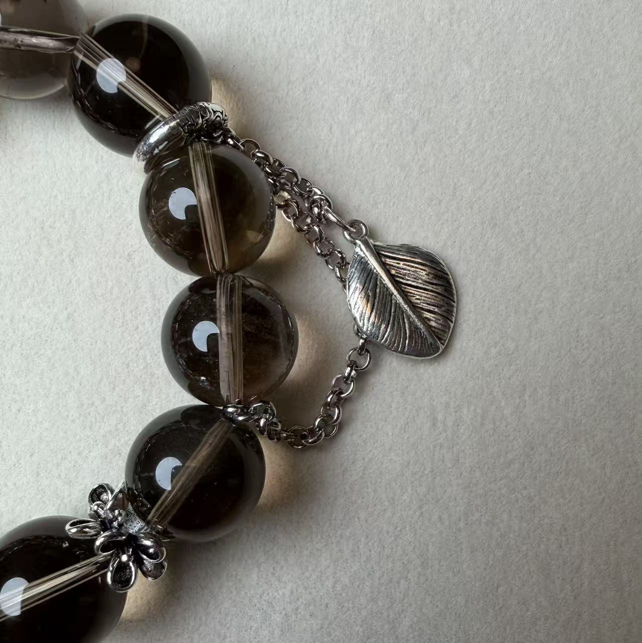 This bracelet highlights the protective and grounding qualities of Smoky Quartz. Known for its ability to absorb and transform negative energy, Smoky Quartz supports emotional stability, clear thinking, and steady confidence. The Clear Quartz center amplifies the bracelet’s overall energy, enhancing purification and mental clarity. The addition of silver details and a leaf-shaped charm brings a touch of natural elegance and symbolic renewal. Perfect for anyone seeking grounding strength, emotional balance, and a calm presence throughout daily life. Especially recommended for Capricorn, Scorpio, and Virgo signs, or anyone drawn to grounding and cleansing energies.