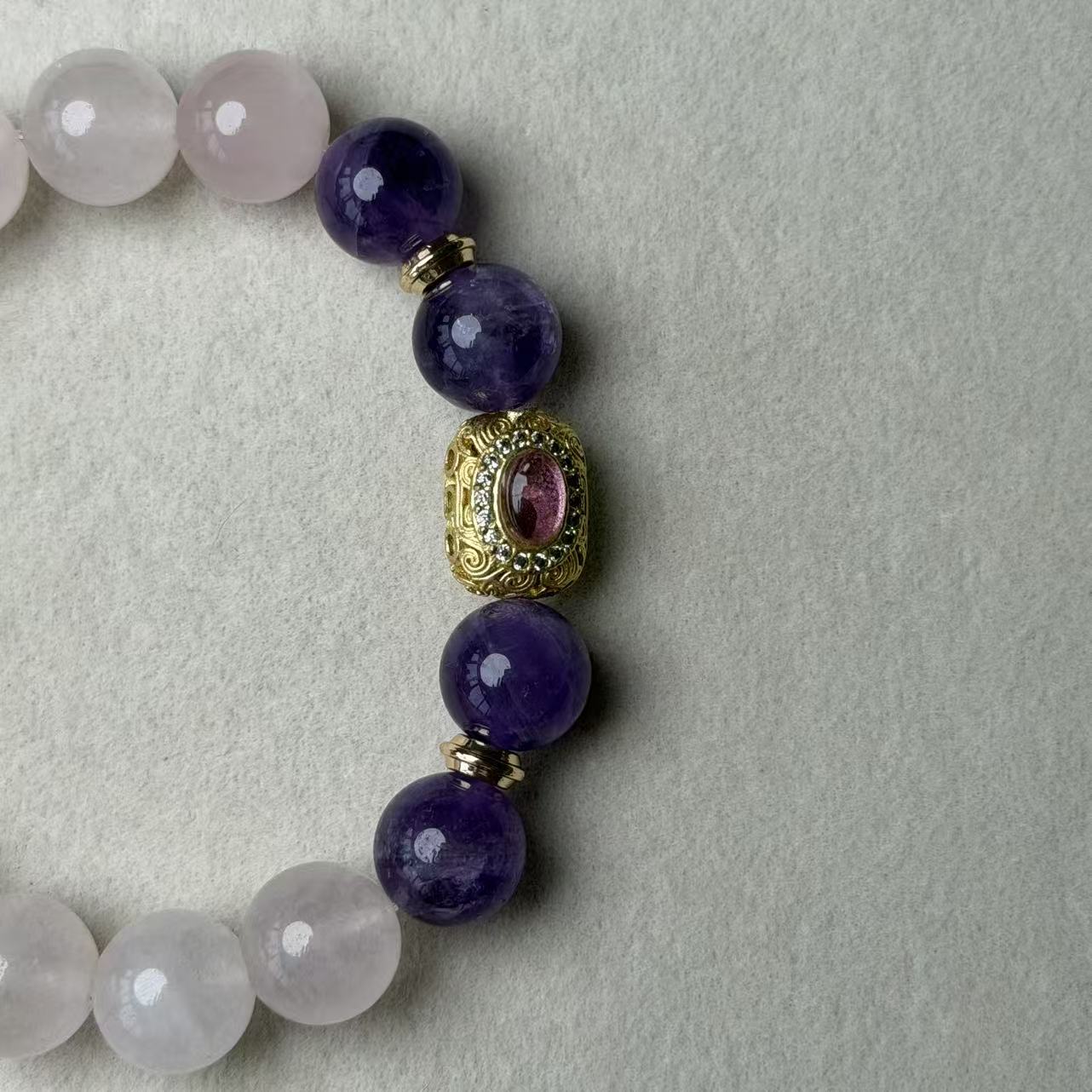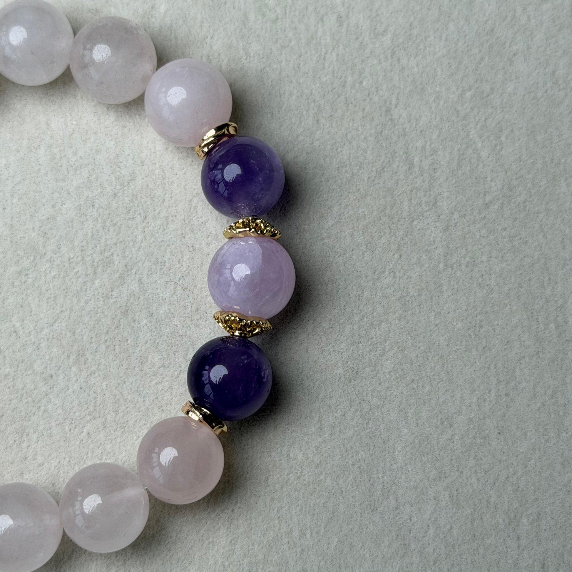 Materials: Amethyst, Milky Rose Quartz, Gold-plated Accent Bead